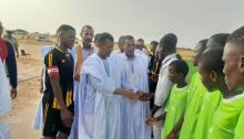 أشرف والي الحوض الغربي المساعد، السيد محمد عبد الله الشيخ سيديا، رفقة رئيس جهة الحوض الغربي، السيد جمال ولد محمد، اليوم الأحد بالملعب البلدي في مدينة لعيون، على انطلاق تصفيات بطولة كأس رئيس جهة الحوض الغربي لكرة القدم.<