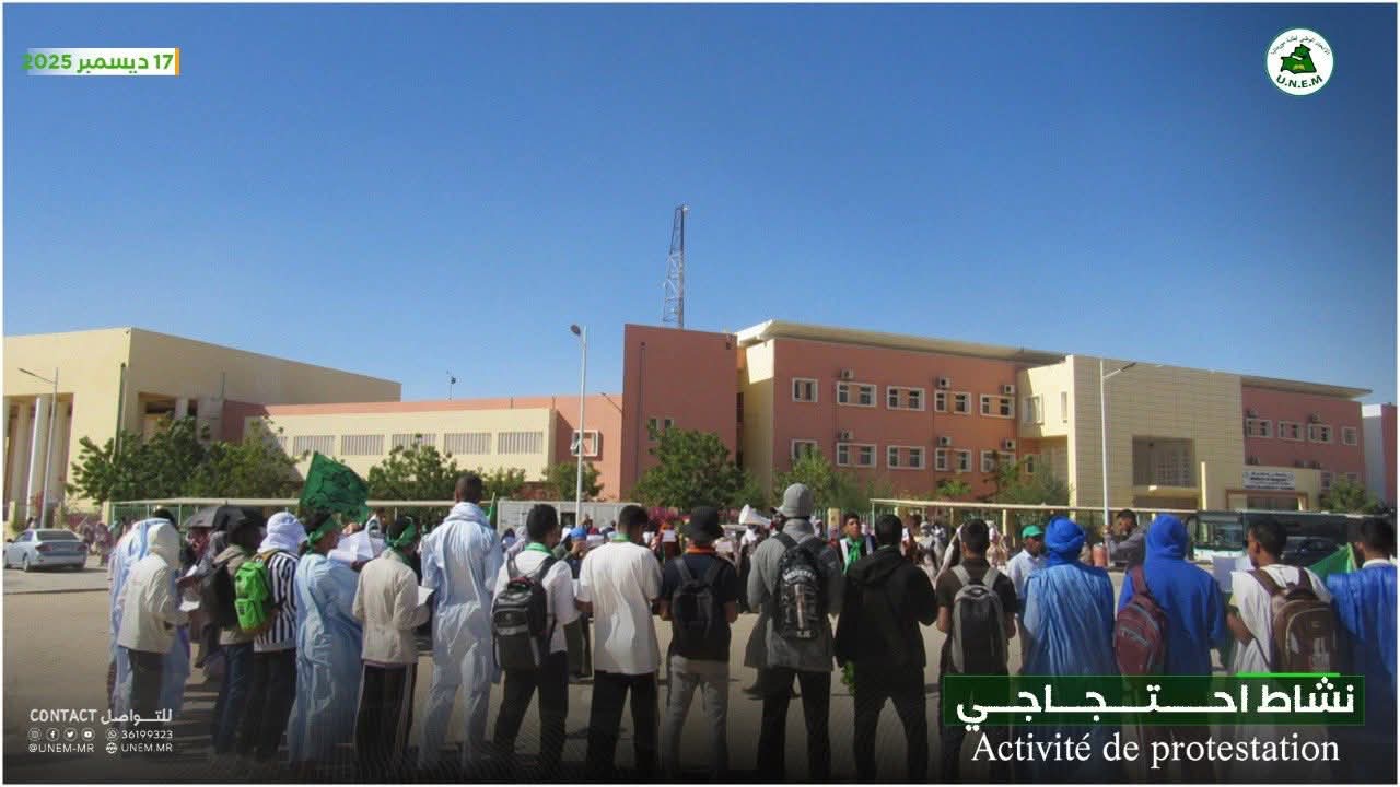 نظم الاتحاد الوطني لطلبة موريتانيا، اليوم الأربعاء، احتجاجا في محطة النقل بالمركب الجامعي الجديد بمشاركة أعضاء المكتب التنفيذي وعدد من الطلبة.
