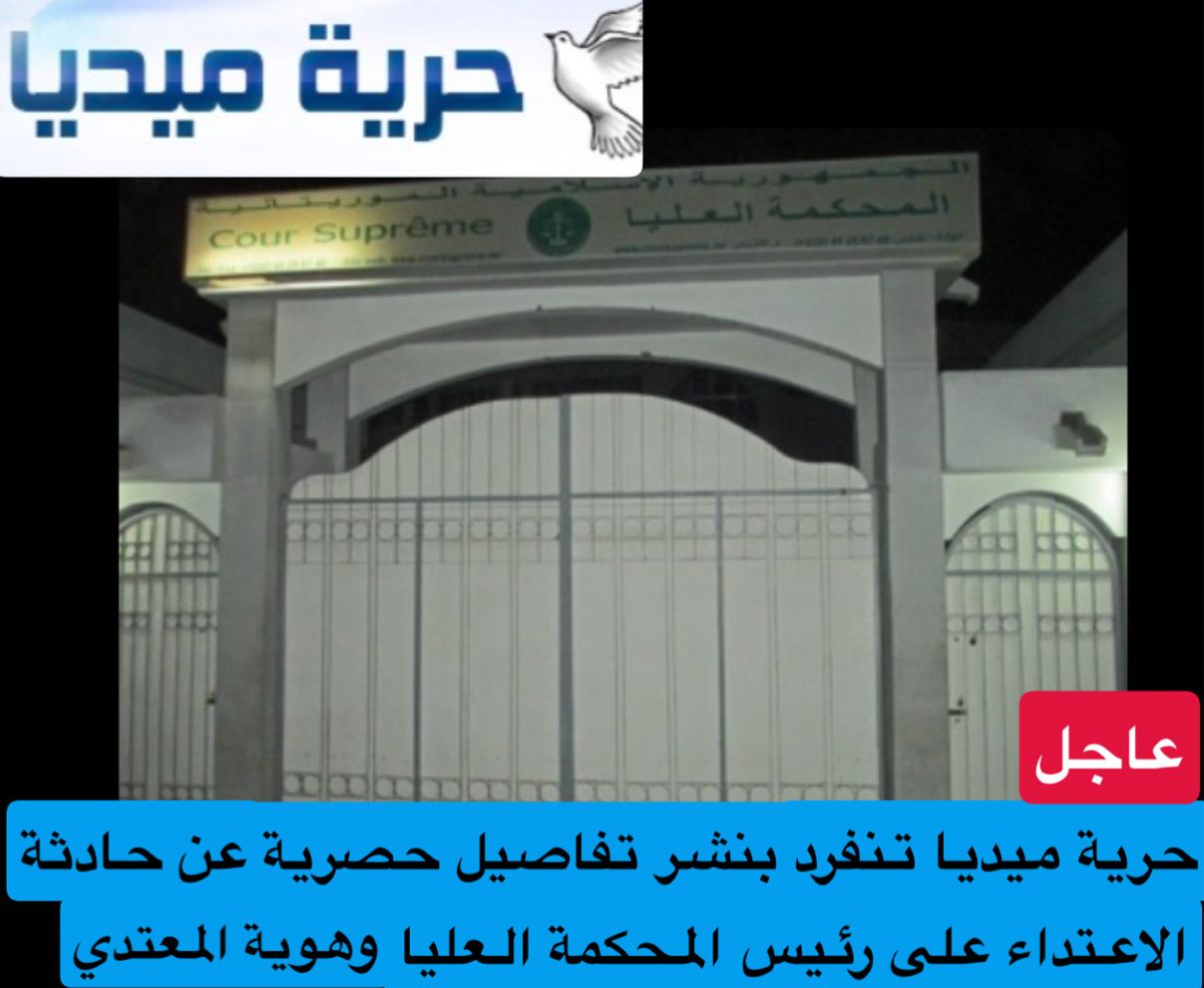 حصلت حرية ميديا عبر مصادرها الخاصة على تفاصيل حصرية عن حادثة الاعتداء التي تعرض لها اليوم ، رئيس المحكمة العليا أثناء تأديته صلاة الظهر ، حيث أنهال عليه المدعو احمد معلوم ول اعمر ، موثق عقود في تجكحة ، بضربات عن طريق عكاز يتوكأ عليه المعتدى عليه، وأضافت المصادر ان تفاصيل الحادثة حسب مقرب من المعتدي تعود الى نزاع بين قبلتين نفضل عدم ذكرهما في الوقت الحالي.