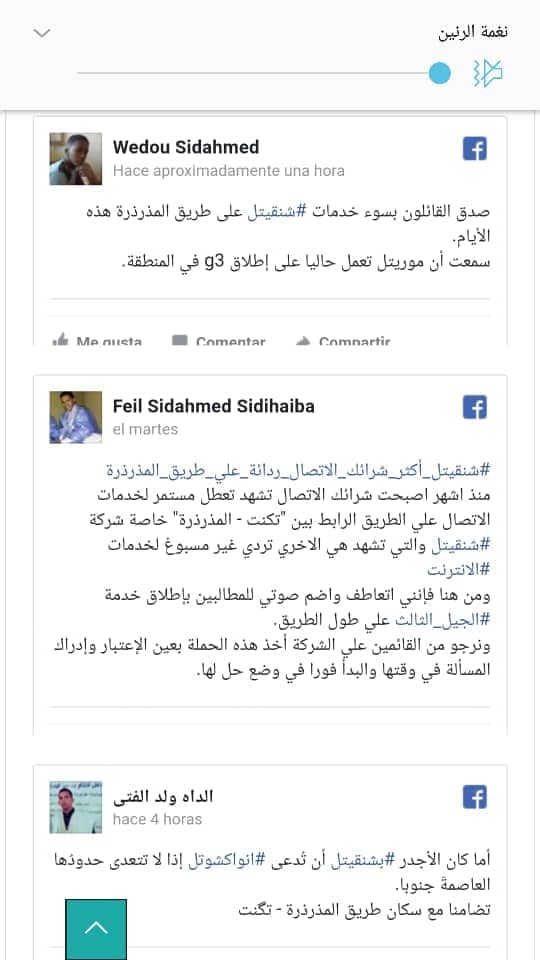 وطالب المدونون وأغلبهم من القرى الواقعة على طول هذا الطريق، بترقية خدمات شنقيتل إلى الجيل الثالث، وتقوية جودة خدمات موريتل، منتقدين في الوقت ذاته تجاهل السلطات المعنية لهذه الوضعية، التي تخالف شروط توفير الخدمة على أحسن وجه للمواطن.